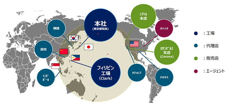 当社は、日本国内にとどまらず、米国やフィリピンをはじめとする海外拠点を展開しアジア・ASEAN・オセアニアまで広がるネットワークを築いています。